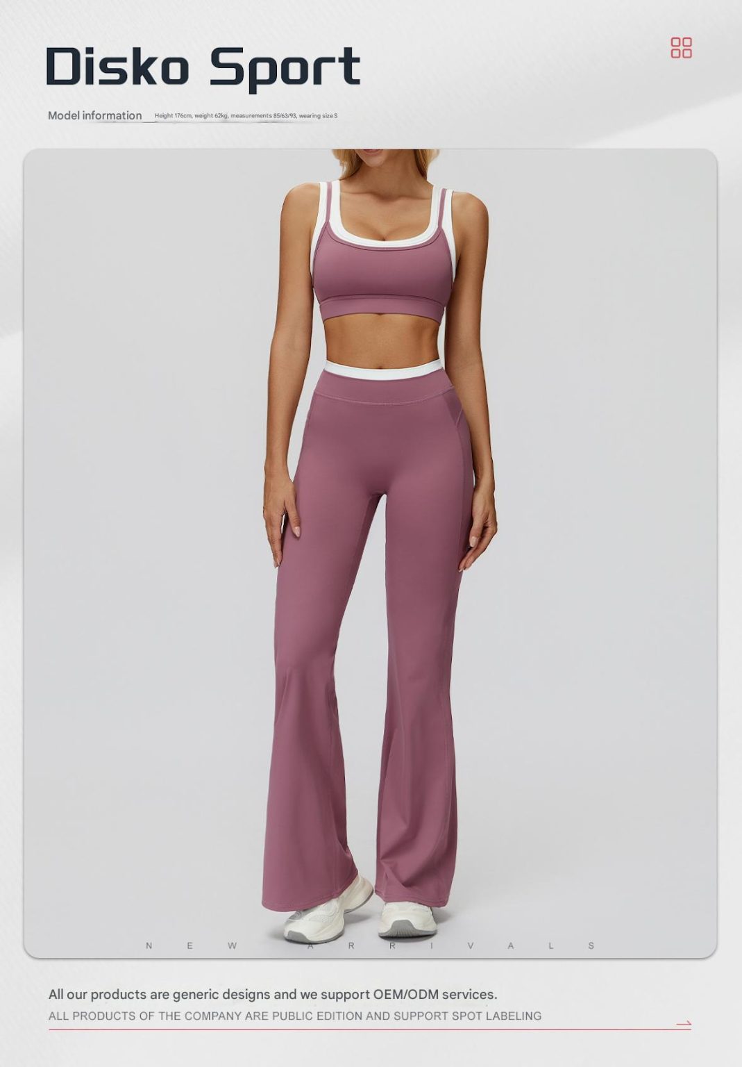 Women’s 2 Piece Contrast Trim Yoga Set, Sports Bra + High Waist Skort Outfit, Dusty Purple